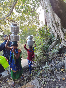 Later on, we had a 3 odd kilometre trek on slippery mountain faces to reach coffee farms and the only water source of theirs. They need to walk for nearly 3 km and trek another 3 km to get water.