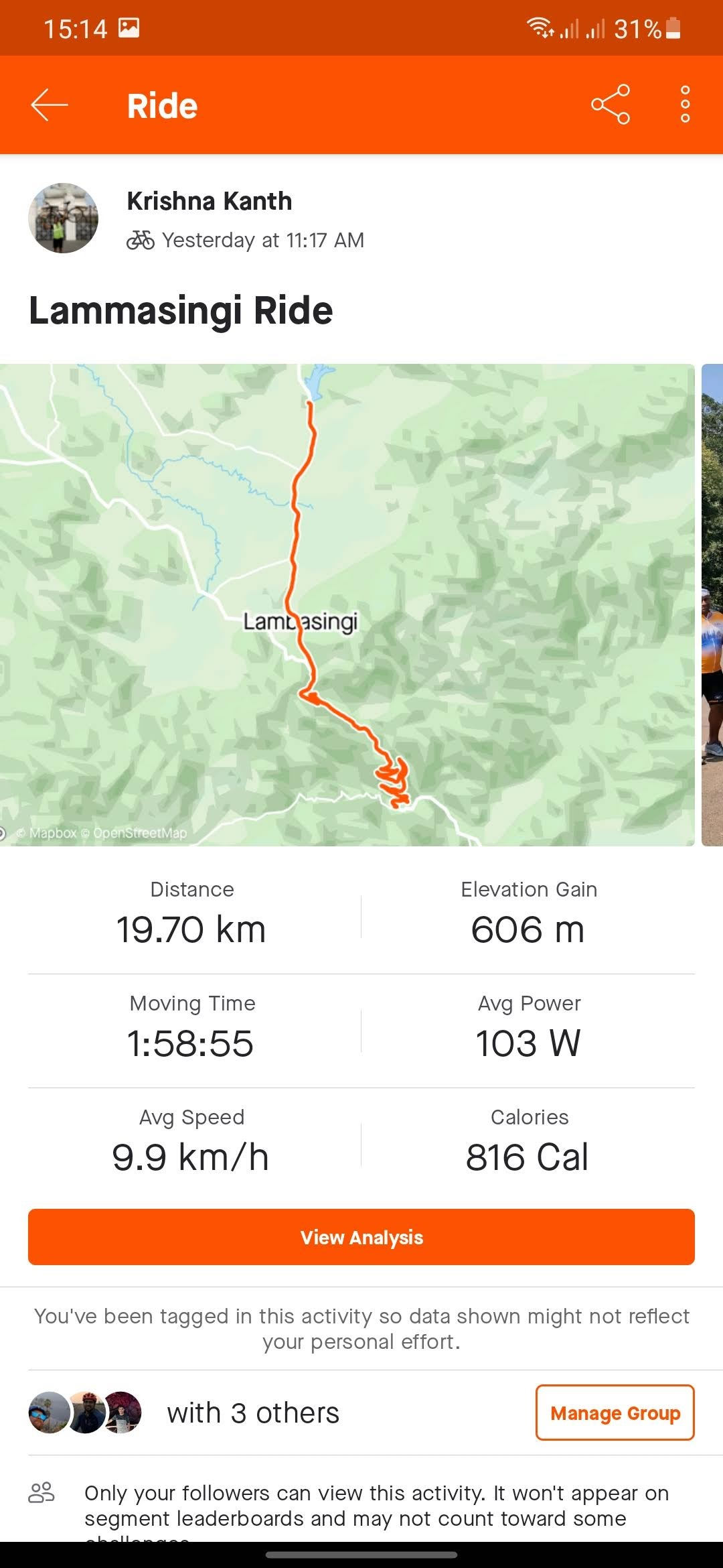We reached our bus. I with few others(Vamsi anna, Ali anna, Harsha anna and Sreedhar sir) decided to ride till Lammsinghi from Venam. While others opted bus till descending Venam and few other villages, for there was a 4 kilometer long gravel road with horrible descent.